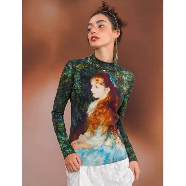 ルノワールの名画「イレーヌ・カーン・ダンヴェルス嬢(可愛いイレーヌ)」を大胆にプリントしたスリムフィットカットソー。