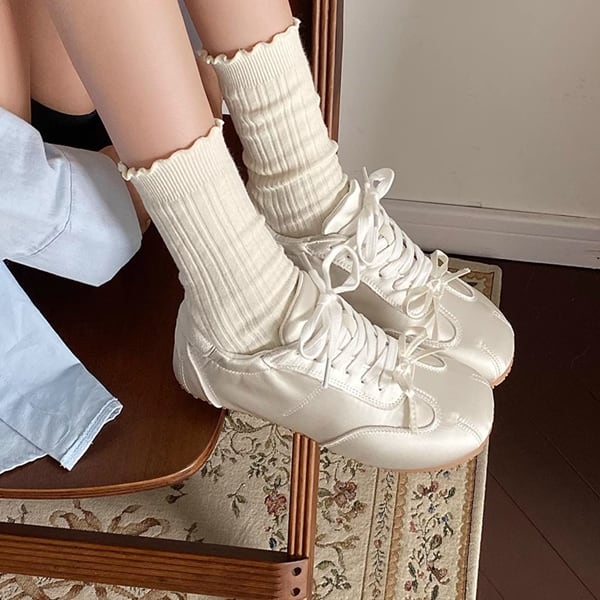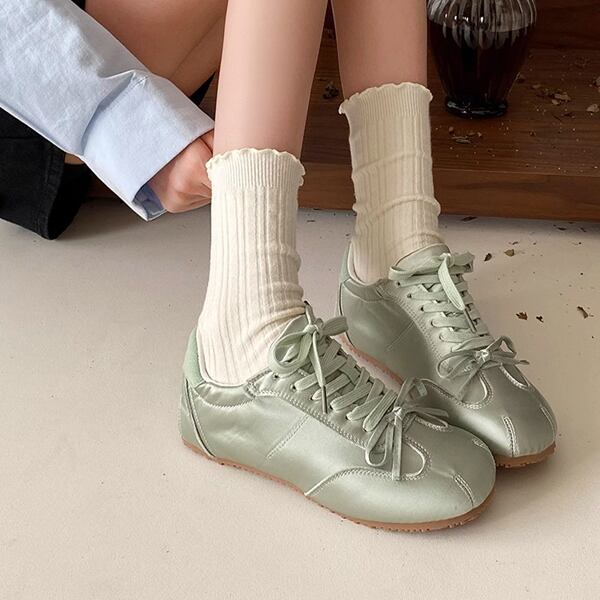 【4color】ラウンドトゥリボン付きレースアップスニーカー Z00337