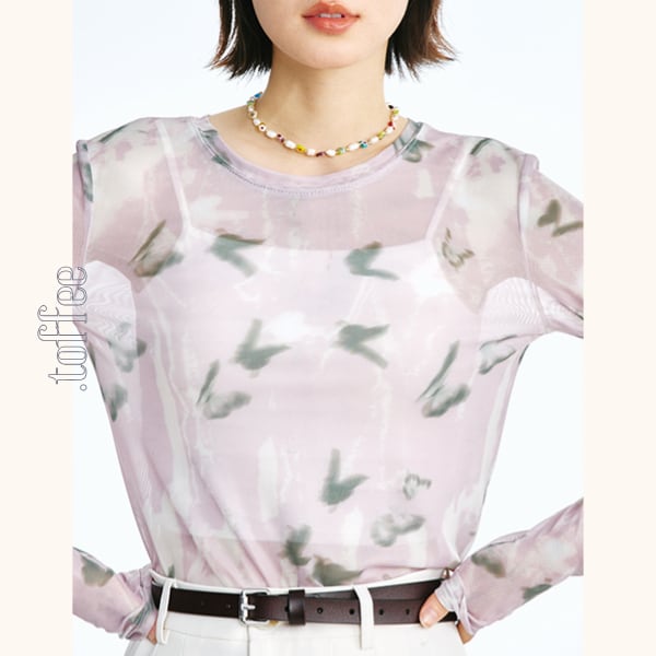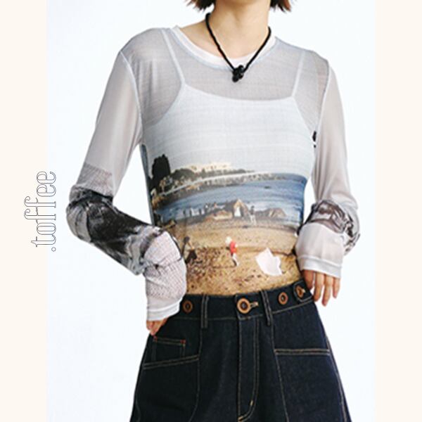 上品な透け感がポイントのシースループリントロングTシャツ。フロント部分に施されたプリントがアクセントになり、おしゃれな存在感を放ちます。ノースリーブワンピースのインナーとしても活躍できる、万能アイテム♡