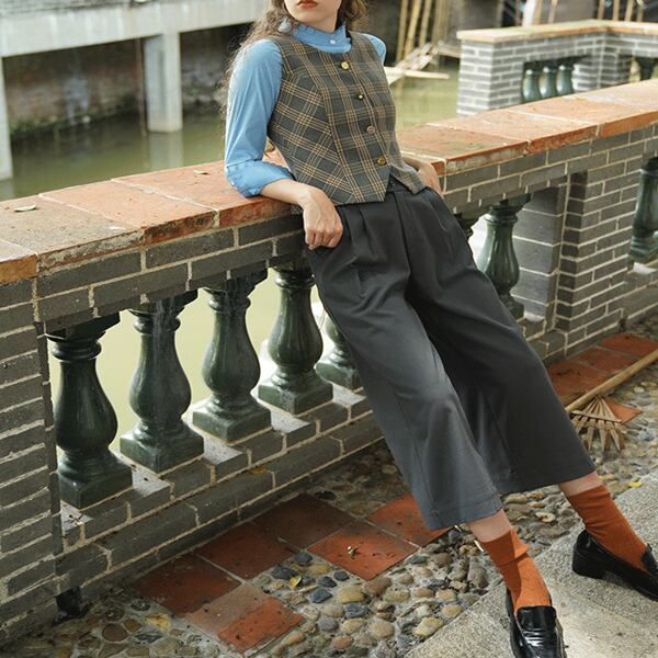 ふわっと揺れる上品なワイドクロップドパンツ。グレーとイエローの2色展開で、どちらもくすんだ色合いが秋冬のコーディネートで一役買ってくれます。ハイウエストのデザインですので、トップスをインしてスタイルアップ効果を狙うのも◎