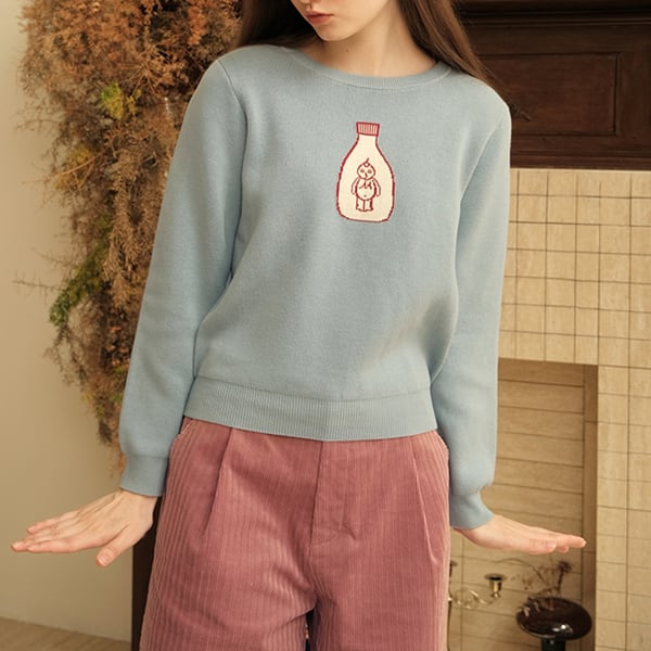 インパクト大のマヨネーズの刺繍がONされたブルーカラーのプルオーバー。肌なじみのよいコットン100%素材で快適な着心地を叶えます。自然と刺繍に目が行ってしまう、存在感抜群の一枚です。