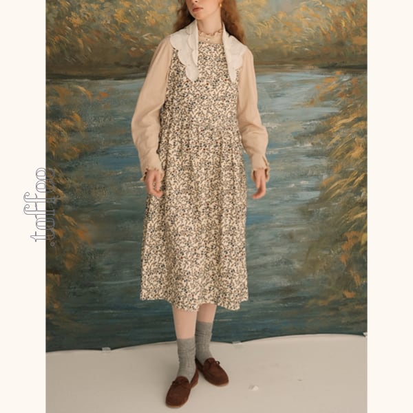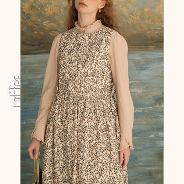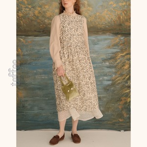 コーデュロイフローラルプリントノースリーブワンピース Z00616