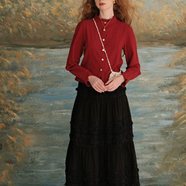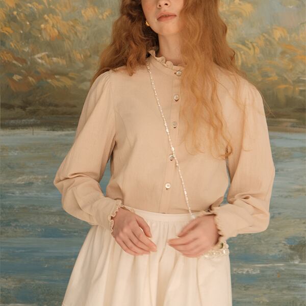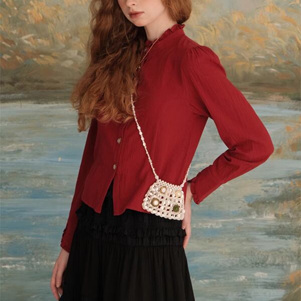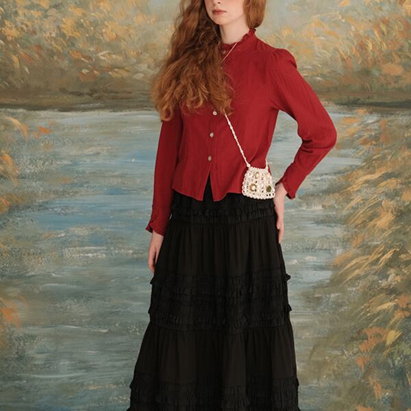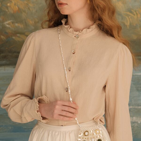 華やかなフリルネックが特徴のショートブラウス。軽やかな素材感とエレガントなデザインが、デイリーユースや特別な日のコーディネートに最適です。フリルネックが女性らしさを引き立て、シンプルなボトムスと合わせることで、さりげないおしゃれを楽しめます。どんなシーンにもフィットするので、ワードローブに加えることで、着回しの幅が広がります。
