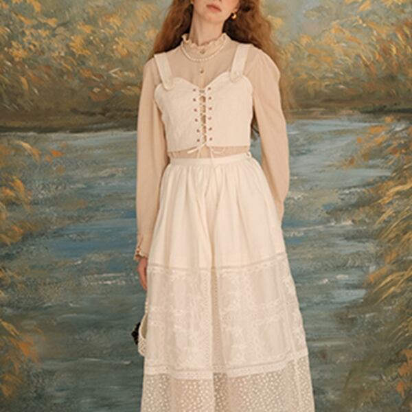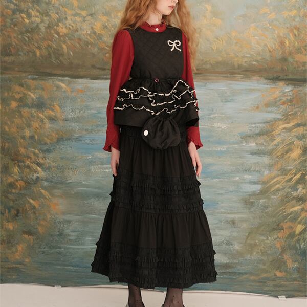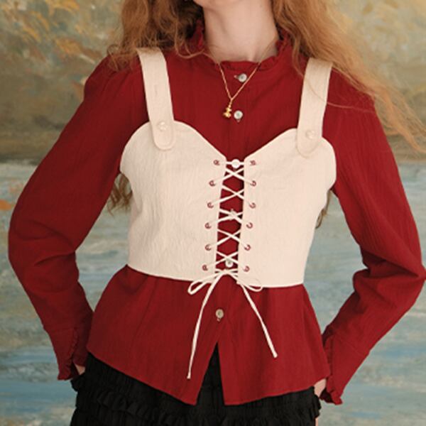 【2color】フリルネックショートブラウス 《Z00618》