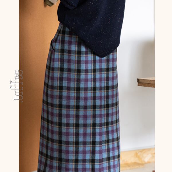 カラフルチェック柄が魅力的なストレートスカート。寒色系の配色が鮮やかで、秋冬のコーディネートを一層引き立ててくれます。シンプルなトップスと合わせれば、明るく爽やかな印象に。デイリー使いはもちろん、特別な日にも活躍できるおすすめのアイテムです