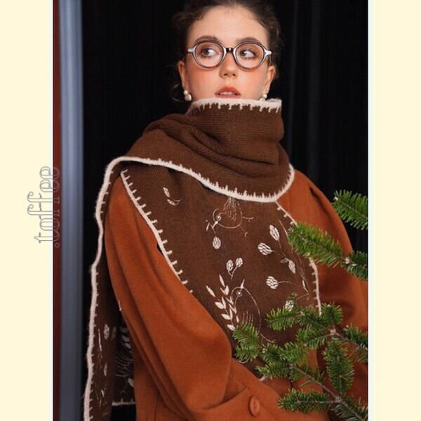 自然と夢が交錯する芸術的な世界を表現したクラシックブラウンカラーのショール。
