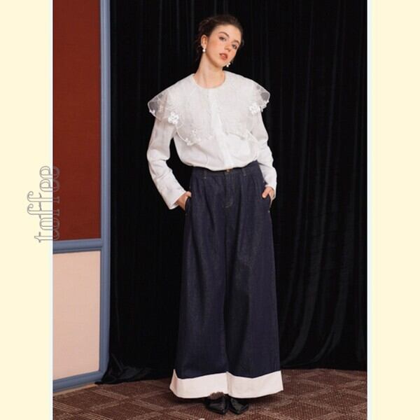 繊細な刺繍レースが織り成すこのブラウスは、まるで妖精の囁きのような美しさを放っています。