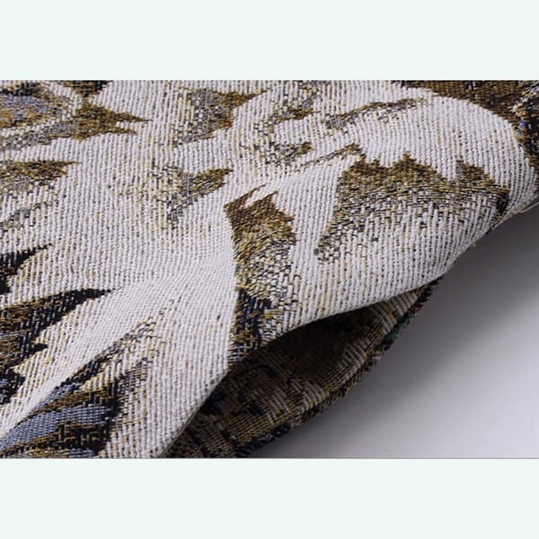 オオカミ、鹿、フクロウ、ウサギなどの森の住人たちが静かに佇んでいる様子を精巧に織込んだ、ジャカードスカートとベストのセットアップ。