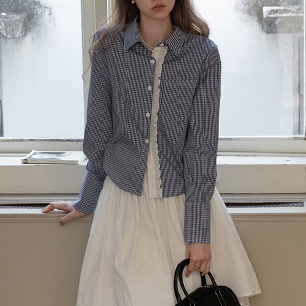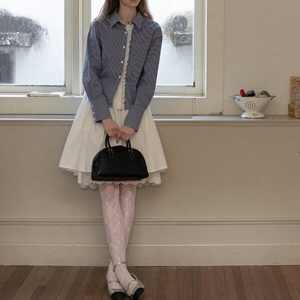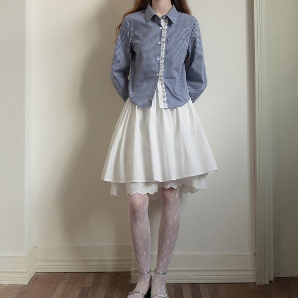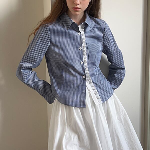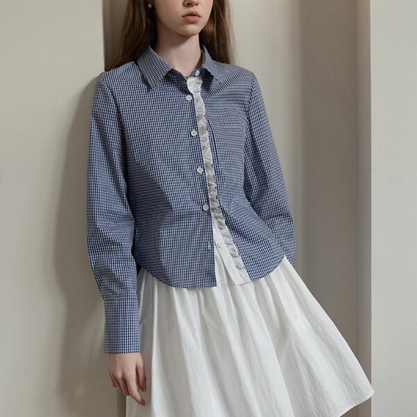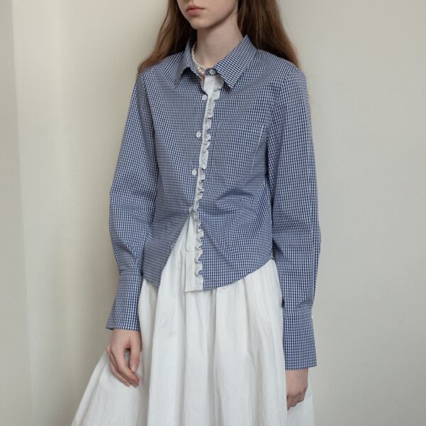 ギンガムチェック柄レースディテールシャツ 《Z00739》