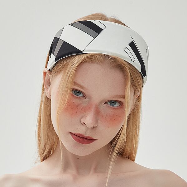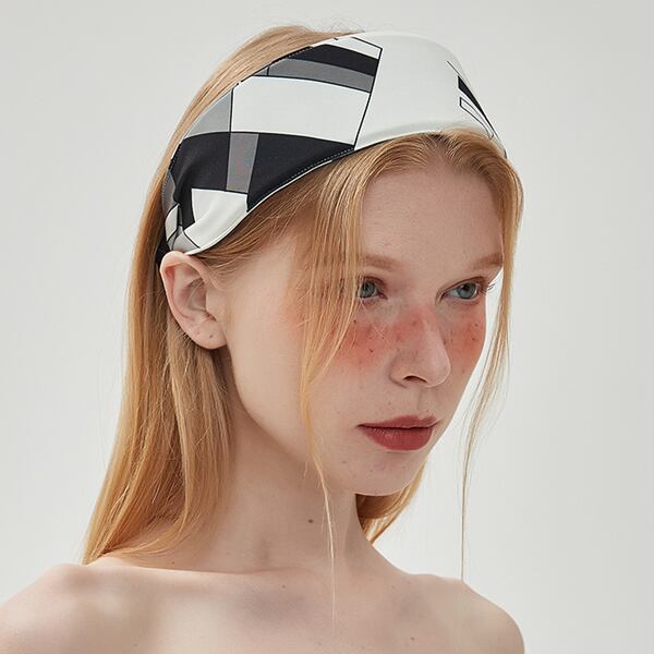シックな幾何学模様が目を惹くヘアバンド。