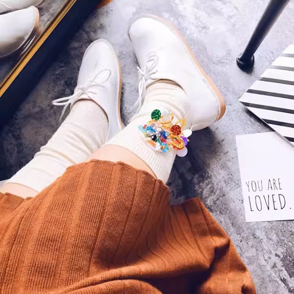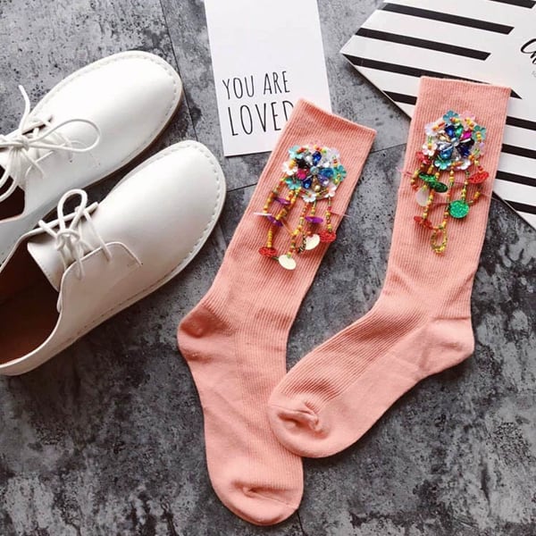 花びらとビーズが織りなす、華やかで繊細なフラワーモチーフがポイントのクルーソックス4足セット。
