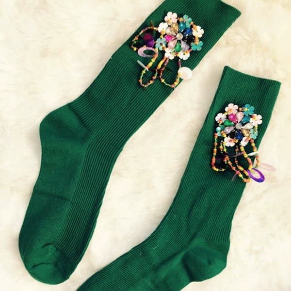フラワービーズ装飾クルーソックス4点セット 《Z00774》